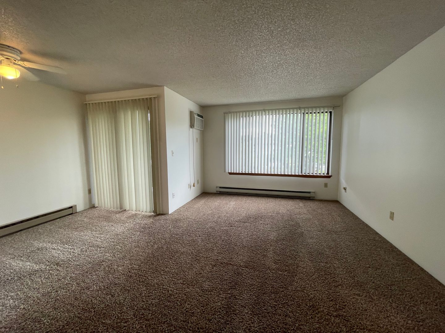 Top floor; one bedroom, one bathroom unit with new paint, carpet and wall A/C unit. Convenient off-street parking and coin operated laundry on site. Kitchen includes range and refrigerator; heat is electric baseboard. Tenant to pay $50.00 per month in addition to rent for water, sewer & garbage.