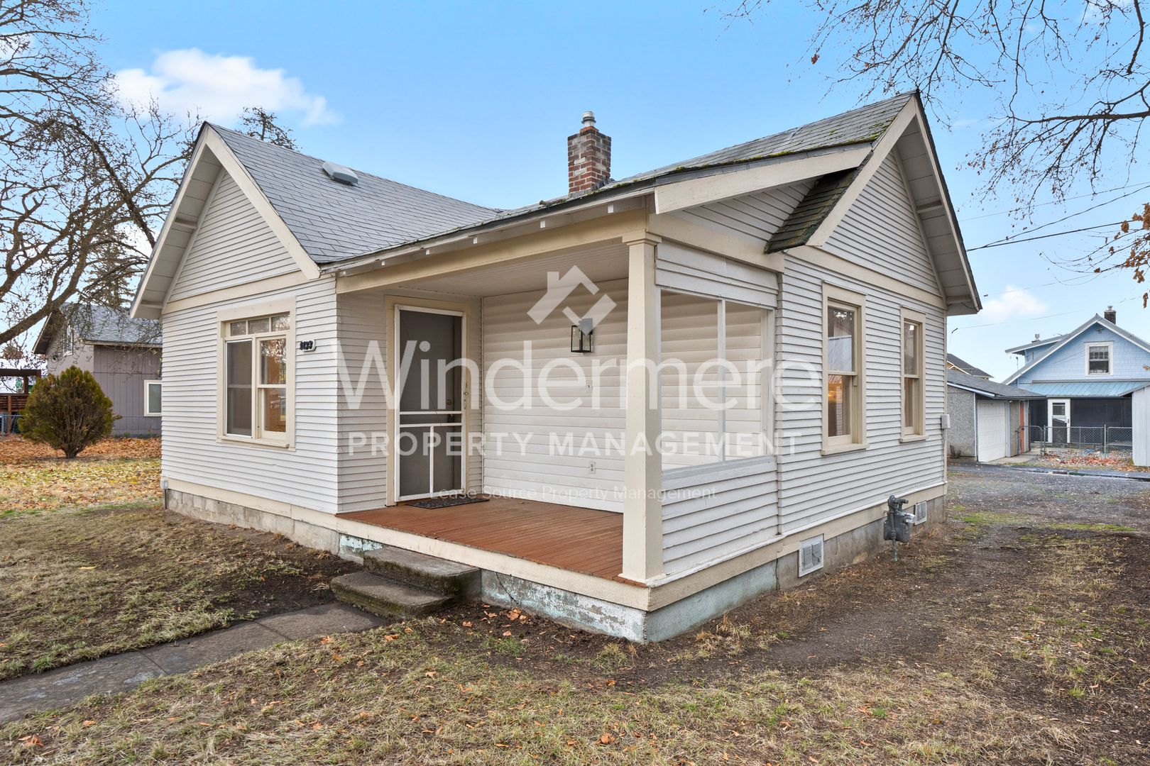 Cozy home on a large lot. Appliances include range, refrigerator, washer and dryer. There is a small detached (garage) storage area. Drive by the property, see if its the one for you, then call 509-467-6109 for a showing and more details. House has gas heat.